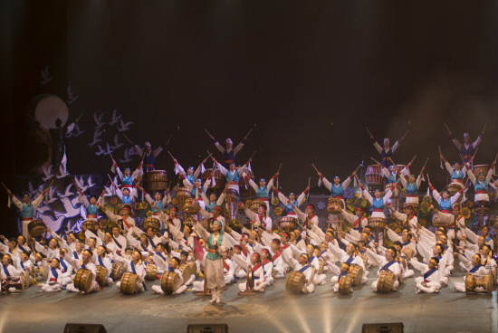 She explains that the community was established in the 1980s, initially as a percussion group. Back then a majority of university students in South Korea were involved in some form of activism, fighting for democracy, which eventually came in 1987. The Keundeul group was an activist group as well and they used percussion instruments and played what Jungin describes as farmers’ music. The solidarity between the group members was very strong and they decided that asking for social justice was not enough for them. They rather wanted to go further and establish something beyond activism, focusing on creating beauty and art together. Eventually, they started getting into performance arts and taught themselves a form of Korean modern theater called Madanggeuk.